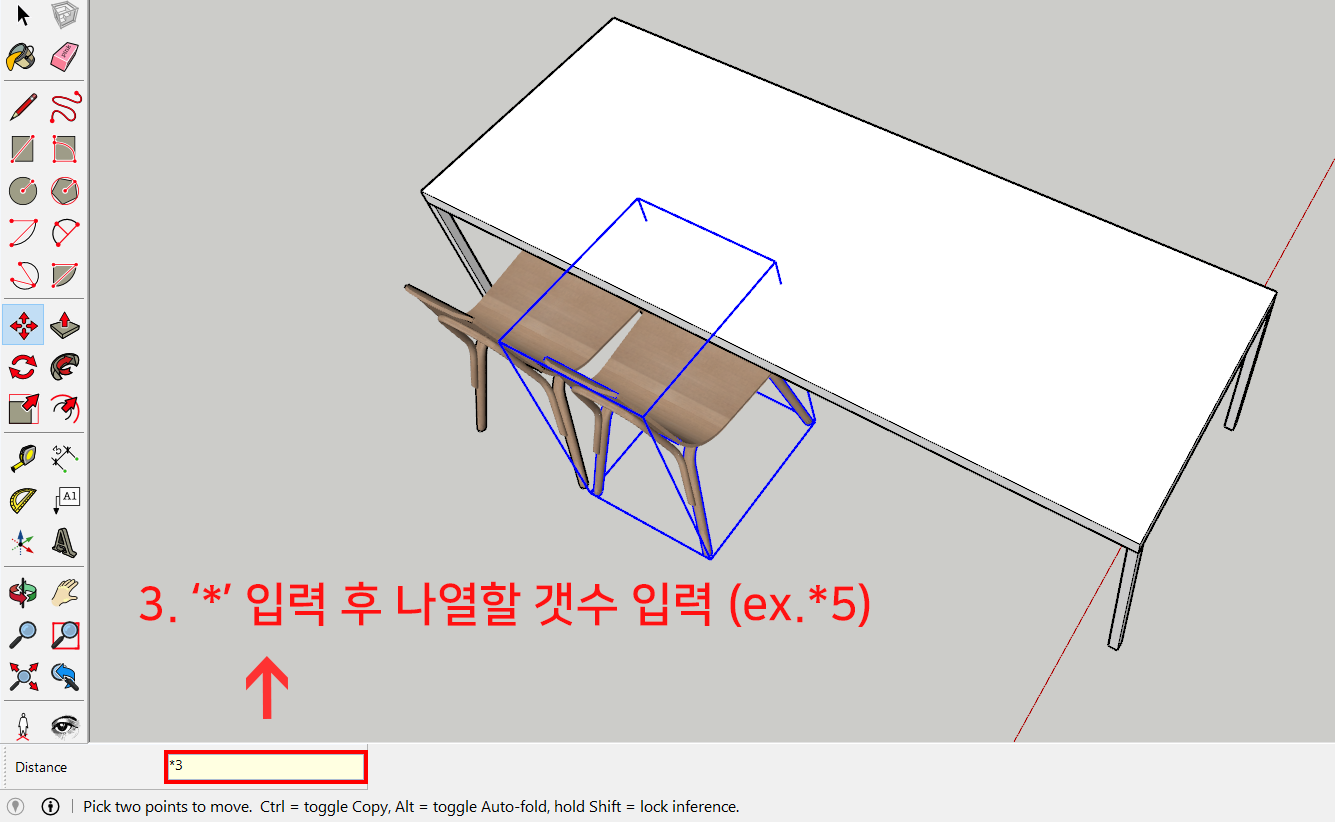 스케치업에서 객체를 한번에 여러개를 복사하는 방법에 대해 알아봅시다.