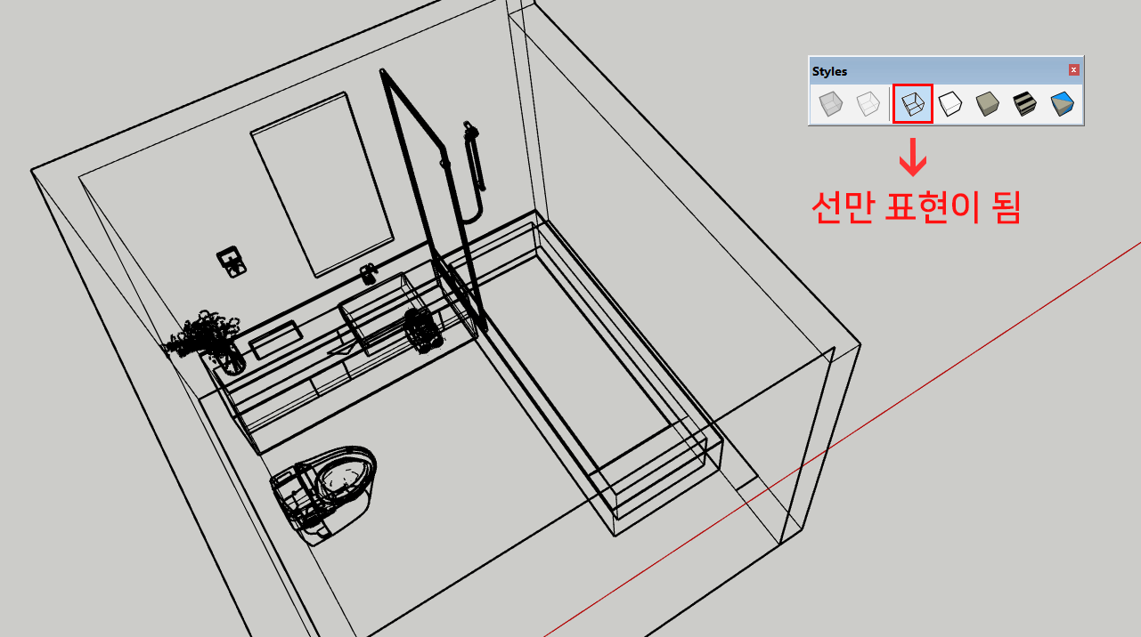 맨 왼쪽 아이콘을 선택하였을 때안보이는 면이 투명도 처리되어져 보이는 것을 확인할 수 있습니다.