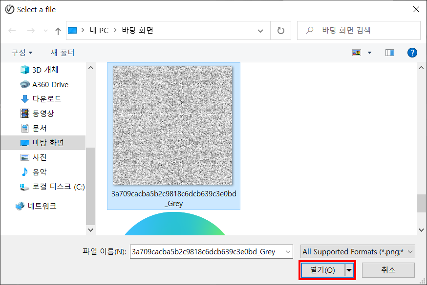 3. 파일 선택창이 뜨면, 재질을 흑백으로 변환한 이미지를 열어줍니다.