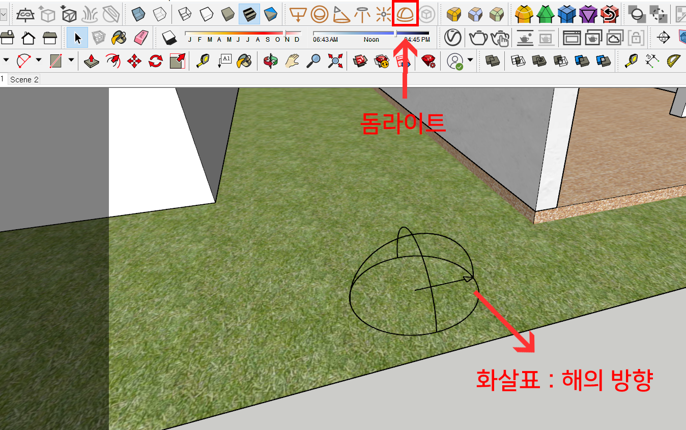 1. 돔라이트 아이콘을 클릭해서 모델 바닥에 위치시켜 줍니다.