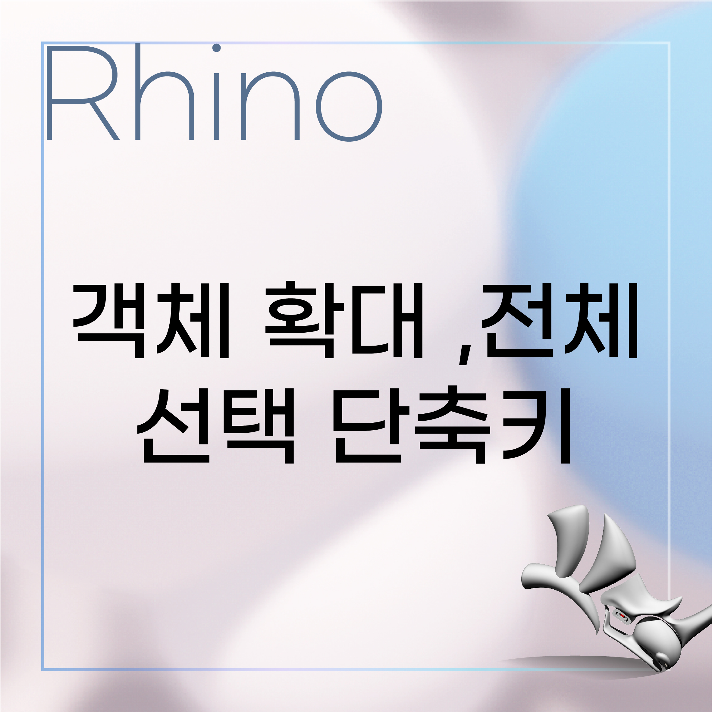 라이노를 켰을 때 개체를 확대해서 봐야 하거나, 전체 위치가 어디있는지 확인하기 위해 전체 선택이 필요 할 때가 있습니다. 객체를 선택하는 여러 단축키를 대해 알아봅시다.