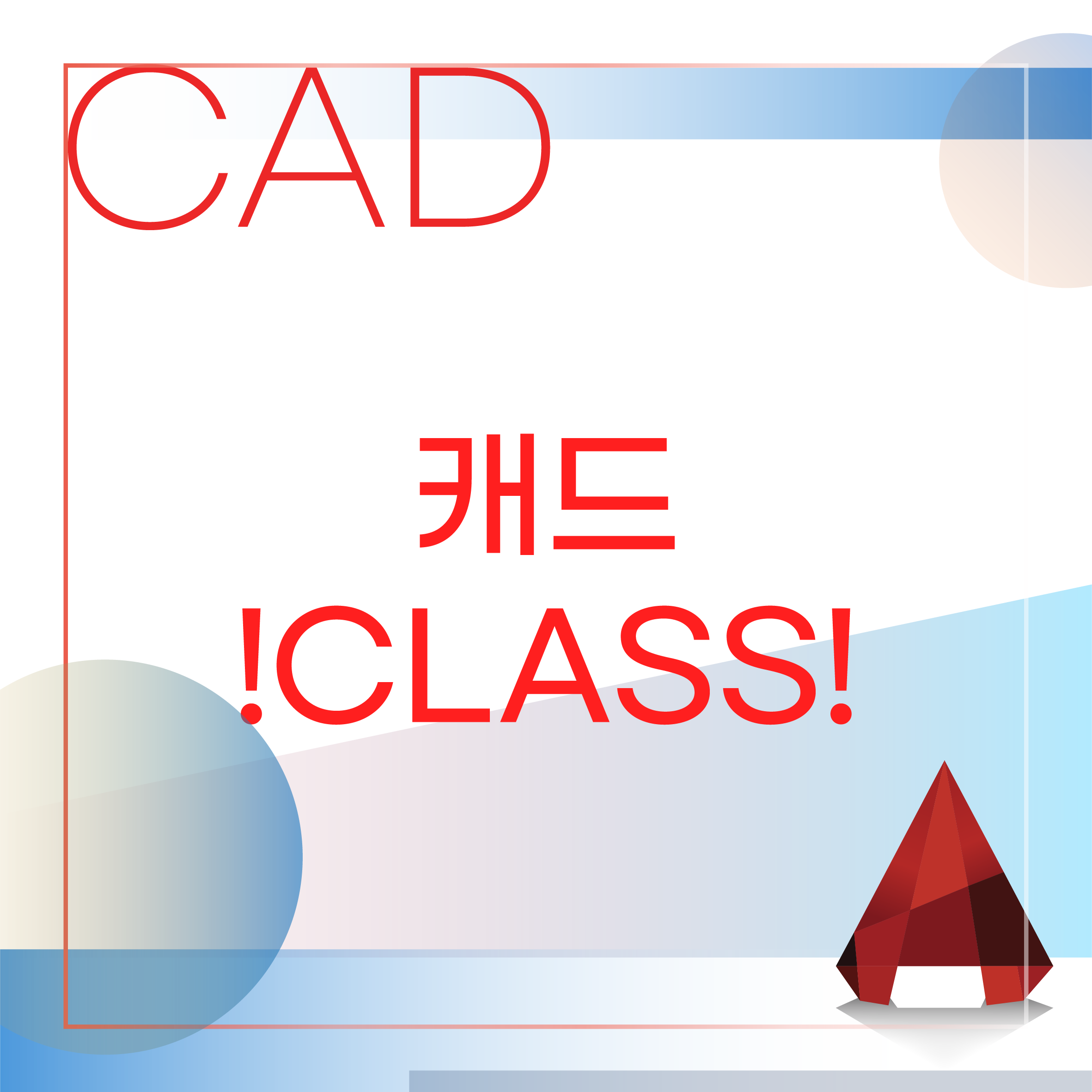 기초적인 캐드 구동 원리부터, 창에 대한 내용, 기본적으로 쓰이는 단축키와 더불어 실습으로 수업이 구성됩니다.