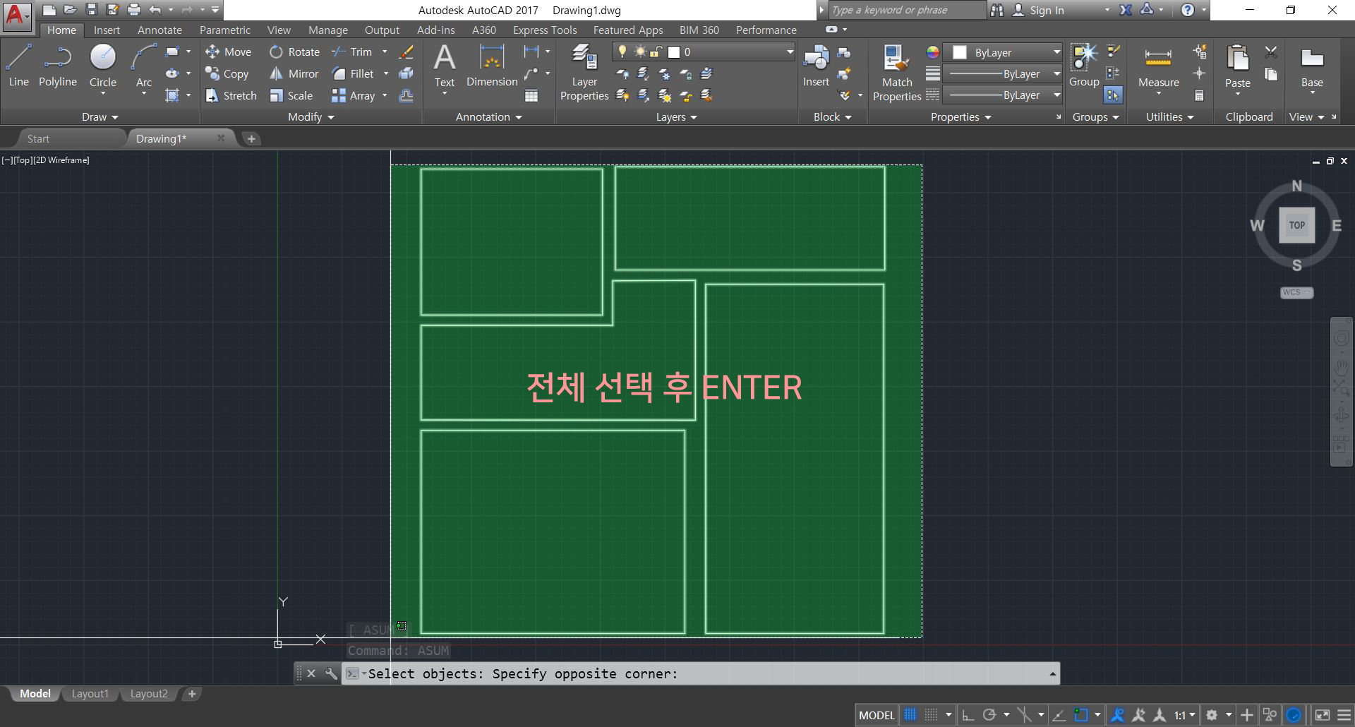 2. 구하려는 면적 객체 선택 후 Enter 칩니다.