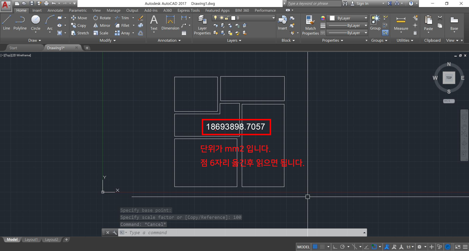 6. 이렇게 면적이 표시가 됩니다. 단위가 헤배가 아니기 때문에 점 여섯자리 옮긴후 읽어주시면 됩니다.