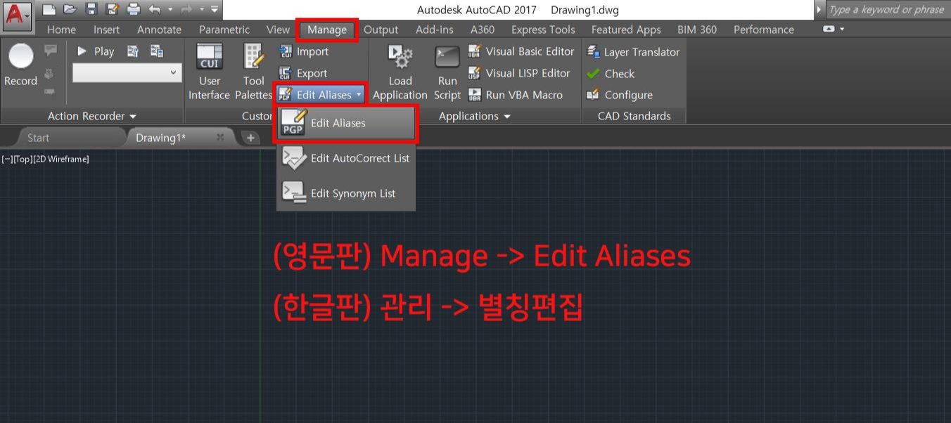 캐드를 능숙하게 다루는 사람들은 자기만의 단축키를 만듭니다.