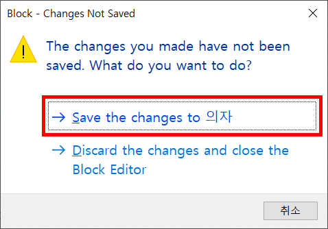 4. Save the change to (블록이름) 선택해 주면, 블록수정이 완료되었습니다.