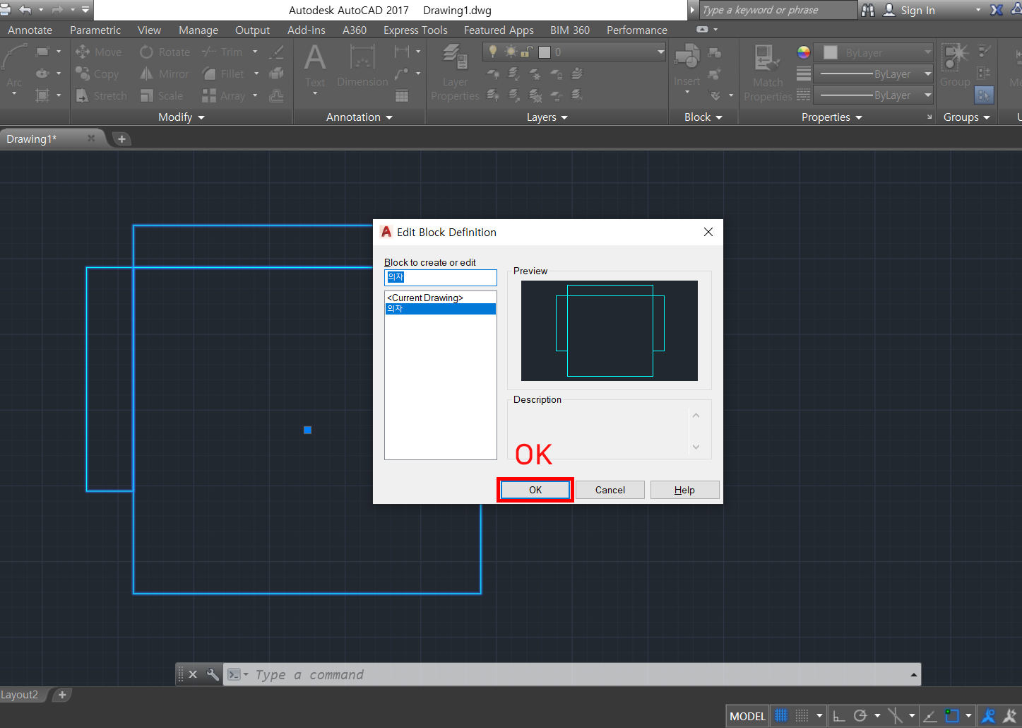2. Edit Block Definition 창이 뜨면 OK 눌러줍니다.