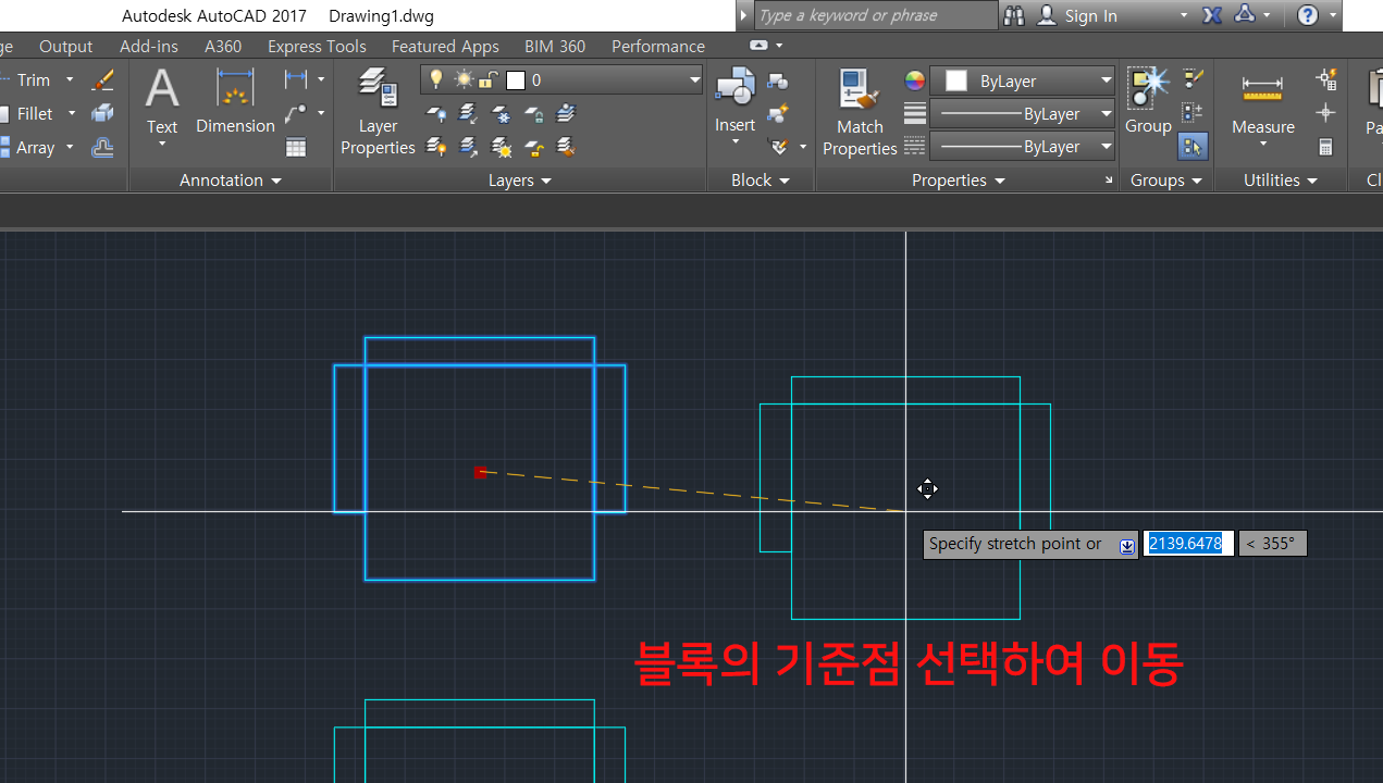5. 블록이 생성되었으며, 블록의 기준점을 잡고 이동이 가능합니다.