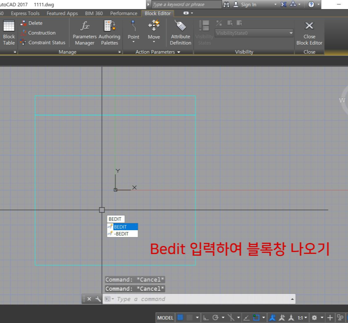 2. 더블클릭하거나 Bedit을 입력하여 블록 편집기 창으로 들어갑니다.