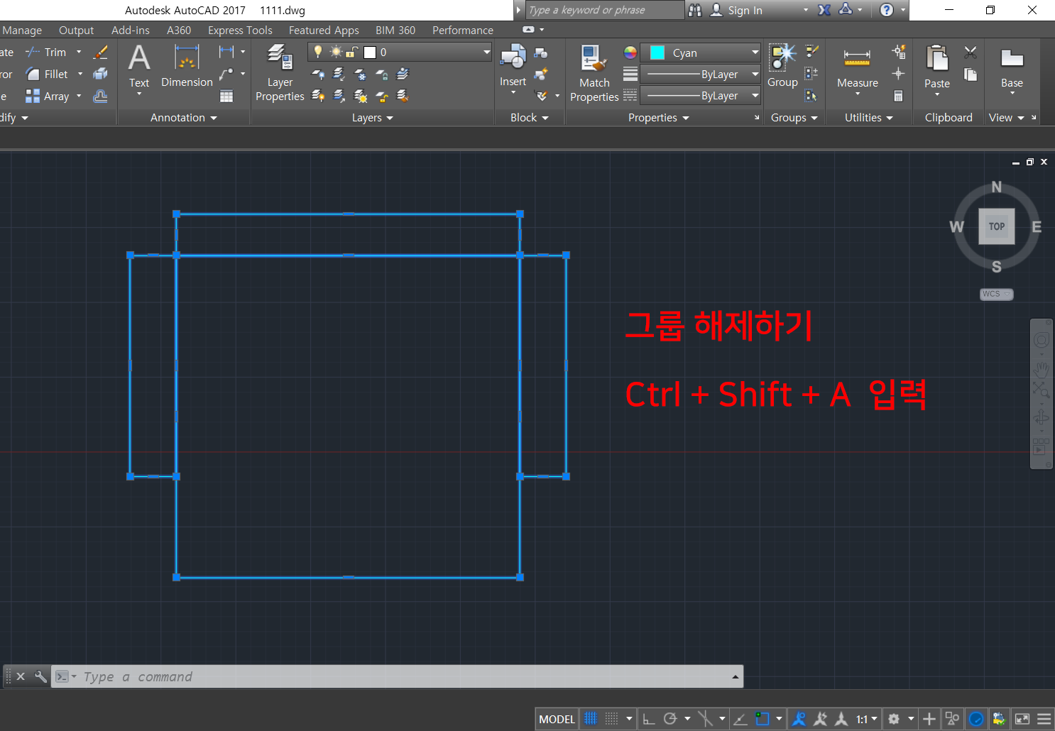 3. 그룹을 분해하는 방법은 'Ctrl + Shift + A' 를 입력하면 해체가 됩니다. (또는 'Ctrl + H' 입력)