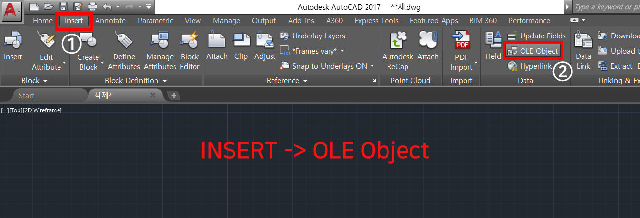 2. OLE 객체로 캐드에 이미지 넣는 방법
