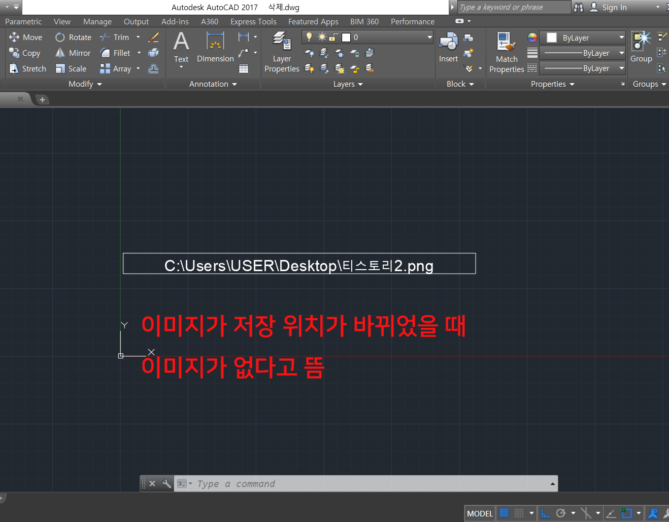 2. 이미지가 삭제 되거나, 저장 경로가 바뀌었을 때 아래 그림처럼 빈 것이 뜹니다. 이를 해결하기 위해 이미지를 도면에 부착해 봅시다.