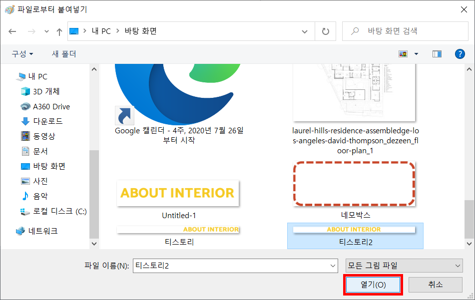 6. 붙여넣으려는 파일을 선택한 후 열기를 클릭합니다.