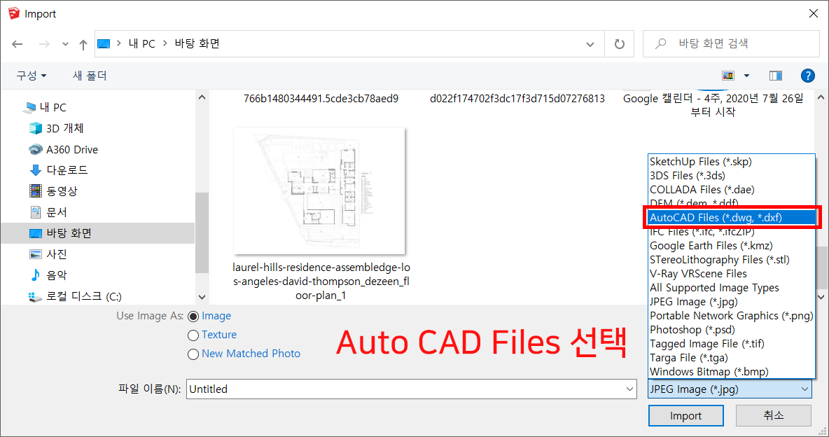 2. 불러오는 창이뜨면, Auto Cad Files 를 선택해줍니다.