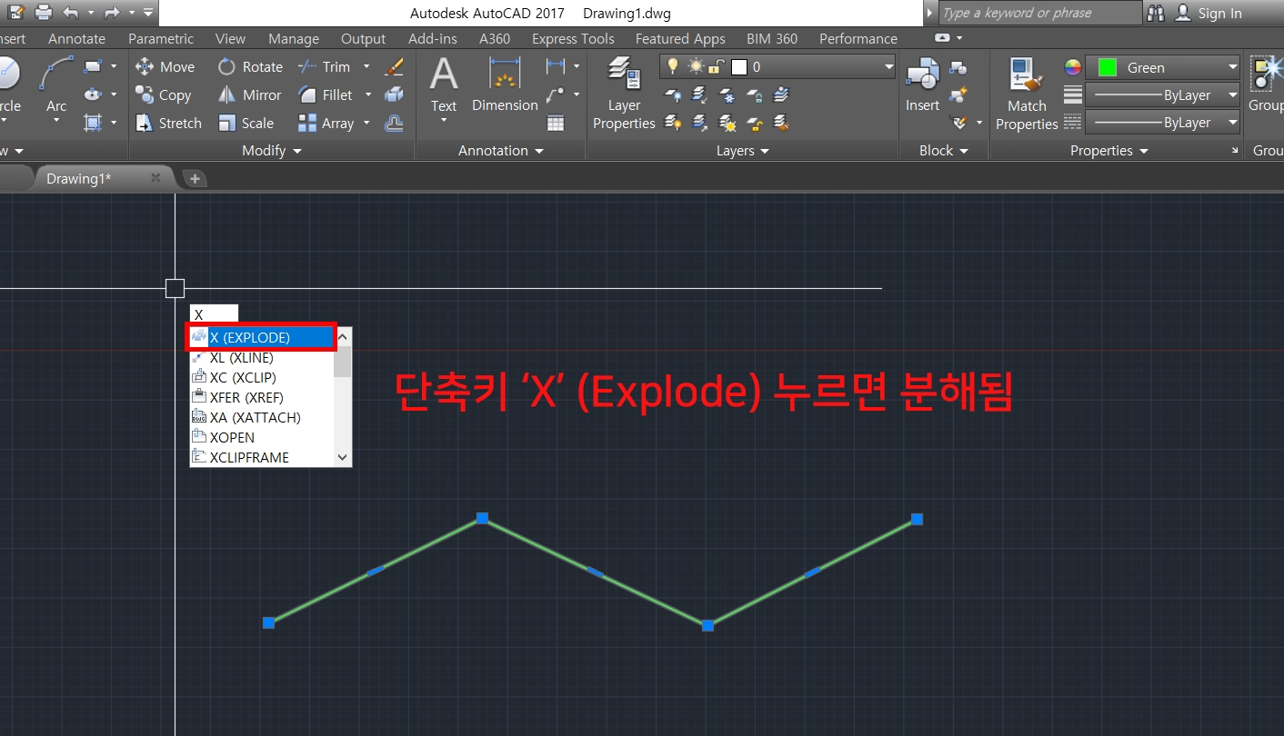 단축키 'X' (Explode) 를 입력하면 라인으로 분해가 됩니다.
