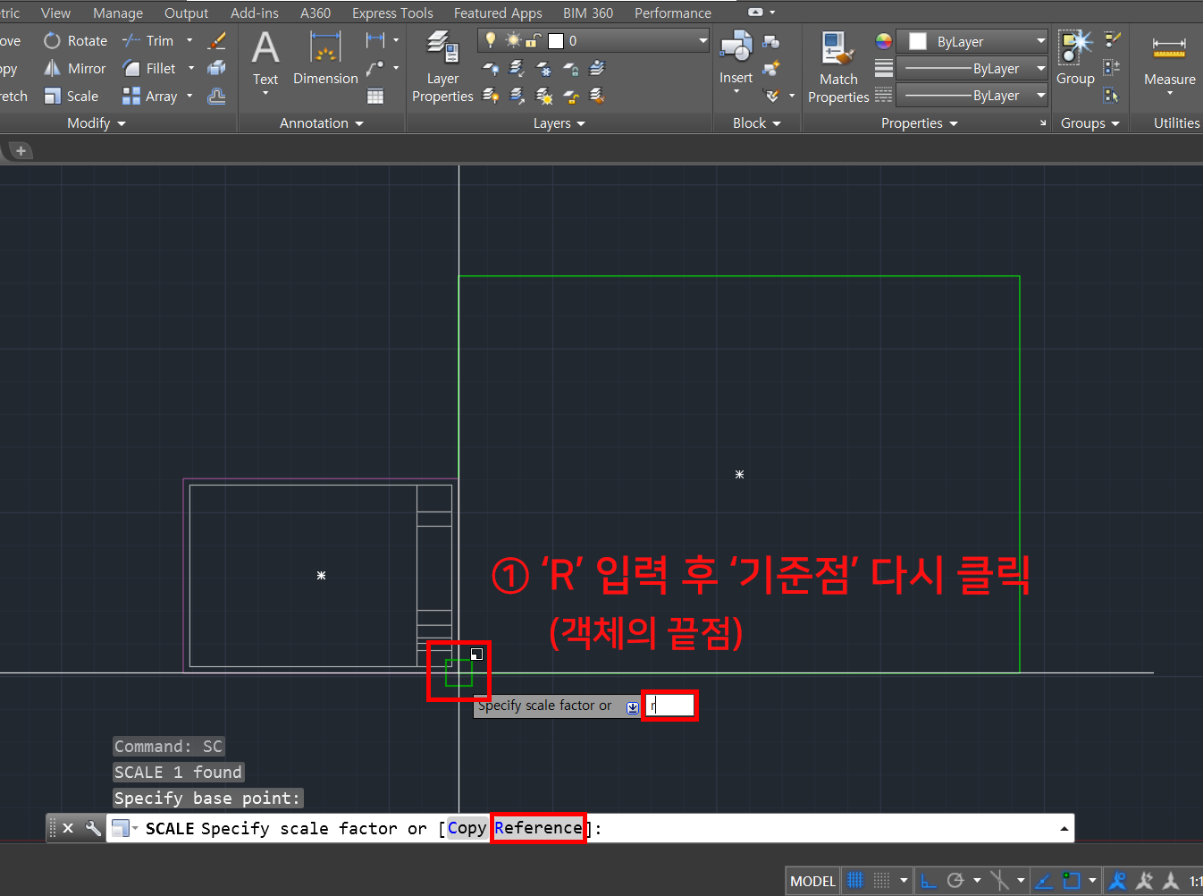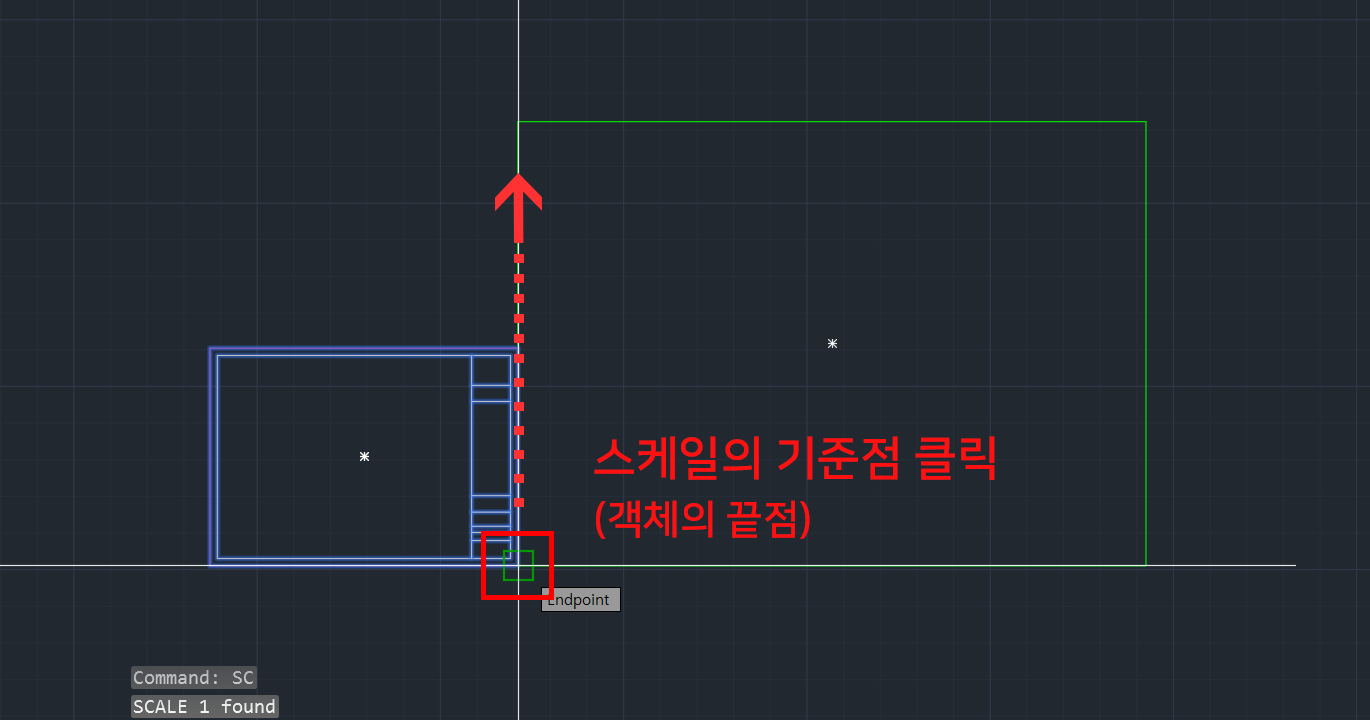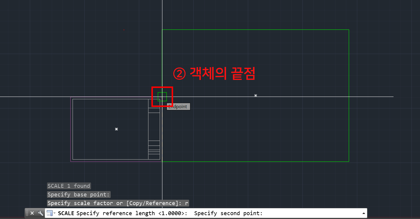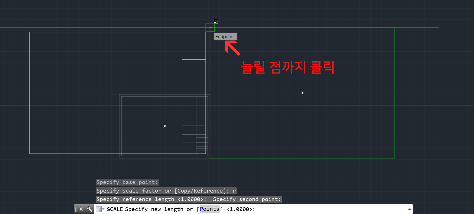 5. 스케일이 조정될 객체의 끝점을 클릭합니다.