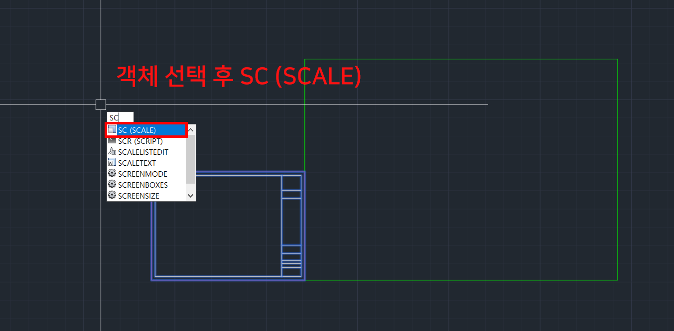 2. 먼저 객체를 선택 후 SC (SCALE) 를 입력 후 Enter 칩니다.