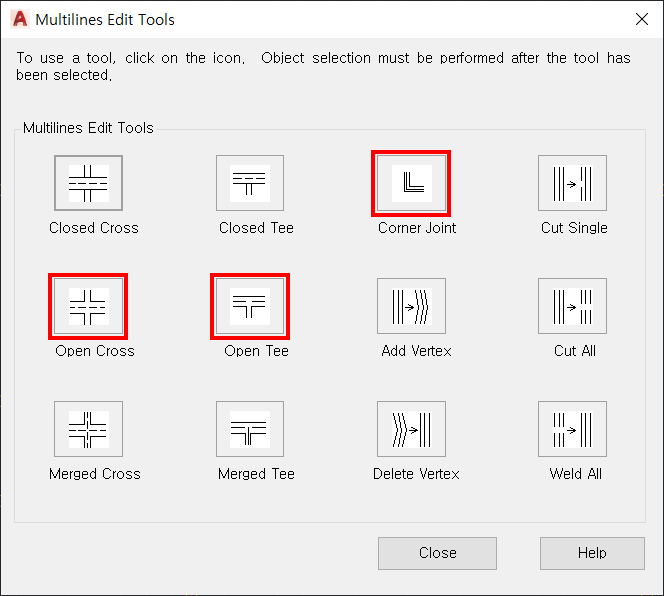 Open Cross 를 선택 후 각각 벽체를 클릭하면, 연결이 됩니다.