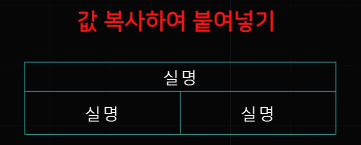 4. 속성값이 생성되었습니다. 중심에 위치시킨 후, 다른칸에도 속성을 만들 것이므로 복사하여 붙여넣습니다.