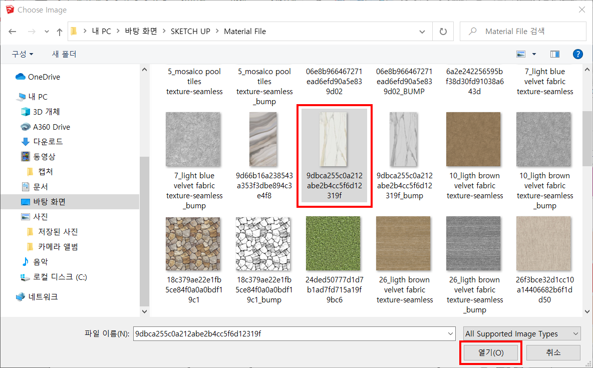 3. 원하는 재질을 선택한 후 열기를 클릭합니다.