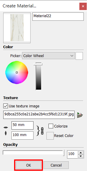 4. 재질이 불러와졌습니다. OK 를 클릭합니다.